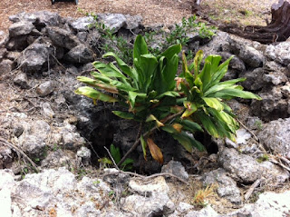 Some ancient Ti tree that Shad says was already there growing when this place was rediscovered. It grows to its maximum and then breaks off, then another branch continues again. Who knows exactly how long this has been going. Since Ti trees don't seed and plant themselves, we are inclined to think that this was purposely planted here for use